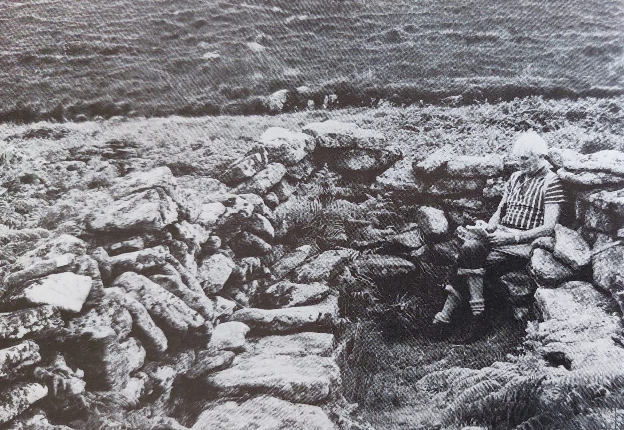 In one of the buildings constructed by the moormen, there is a raised plinth which is capped by flat granite slabs to for seating and one well known Dartmoor author, Eric Hemery appears in a photograph where it looks like he was sketching or possibly taking notes. Eric Hemery refers to Erme Pound in his publication ‘Walking Dartmoor’s Ancient Tracks – A guide to 28 routes’.