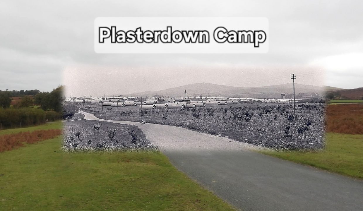 This map shows all the buildings of Plasterdown Camp from the 1940s to 1970s, which extended from the Horrabridge / Warren Cross road in the west to the Whimington / Warren Cross road in the east. The Grimstone and Sortridge ran through the camp, roughly north to south from where the map is annotated ‘sinks’, past the ‘Plymouth 12 MS’ then across the open piece of land. The leat is not shown on the map as it was channelled through a concrete pipe to prevent the water getting pollutedThis aerial photograph of Plasterdown Camp is from 1946, just one year after the 115th Hospital Field Unit left the siteThis fabulous article on Plasterdown Camp was written by local author Roderick Martin and is reproduced here with permission, with grateful thanksPlasterdown Camp from the south west (Jordan Lane) where the road crosses Grimstone and Sortridge Leat – date unknownThis is the same view of the previous black and white photograph taken in October 2025. Superimposed photographs, which are between 50 and 80 years apart. The tors and roads are lined up. The road coming in from the left leads to Fullamoor FarmSame composition zoomed outOld postcard of Plasterdown Camp also from the Horrabridge / Warren Cross roadAerial ViewThis fabulous article on Plasterdown Camp was written by another local author Gerry Woodcock, who was a prolific writer on Tavistock and the local area. The newspaper article was shown to the author my Jill Fitzsimmons who also provided the author with lots of information regarding the camp, with grateful thanksThis view of the camp is believed to have been taken near the Whimington road