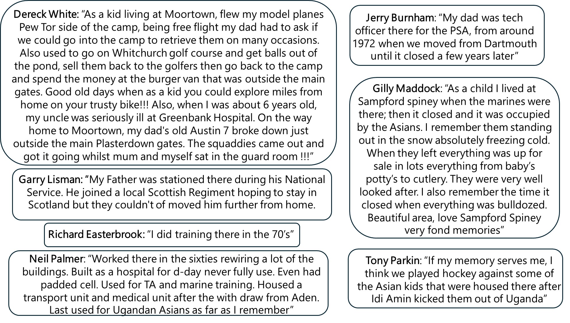 These quotes have been provided by those who either directly had experiences of the camp or had relatives who were there