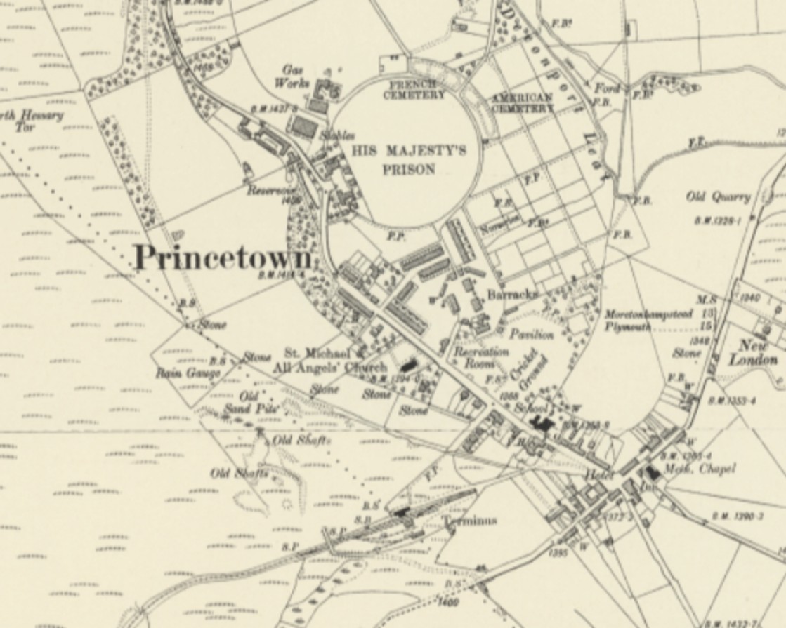 Princetown has has its origins in 1785, when Sir Thomas Tyrwhitt (before he was knighted), then secretary to the Prince of Wales, leased a large area of moorland from the Duchy of Cornwall estate, with the intention to convert it into good farmland. He then encouraged people to live in the area and suggested that a prison be built there. He called the settlement Princetown after the Prince of Wales.Tavistock Road looking north, circa 1917Some of the buildings from 1917. The imperial Hotel was demolished in the 1970sTavistock Road, November 2025Combined pictures from 1917 and 2025