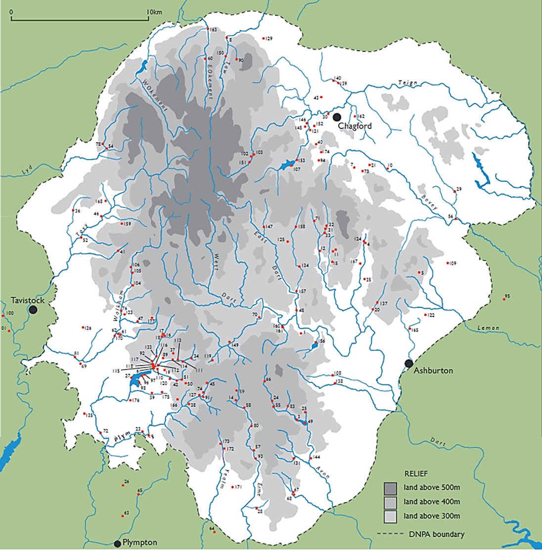 | 15. Blackm[ore] (1582) | SX698 770 | Documentary references indicating the presence of a Medieval tin mill but no proof has been found to confirm this. |